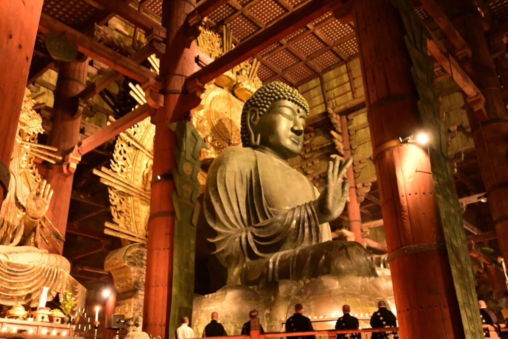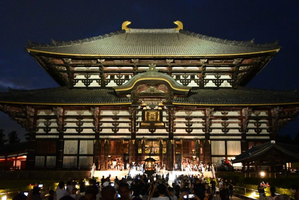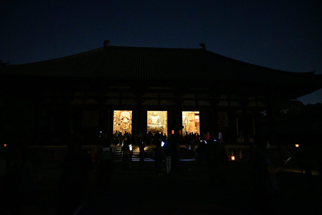 Des lanternes sont placées dans la salle du Grand Bouddha, et le visage du Grand Bouddha, qui ne peut généralement être vu que de l’intérieur de la salle du Grand Bouddha, peut être vu depuis l’approche. Environ 2 500 lanternes sont soigneusement alignées sur le trottoir de pierre menant à la salle du Grand Bouddha, créant un spectacle fantastique.