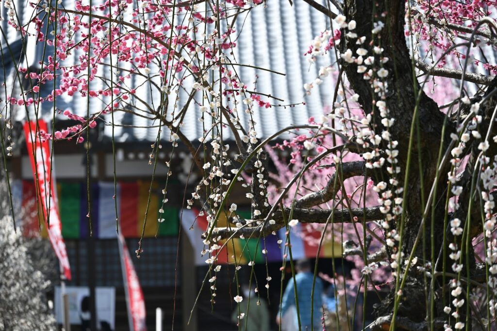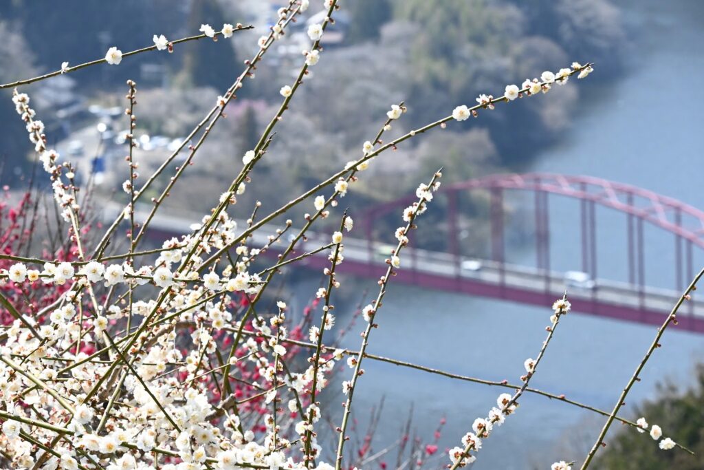 Tsukigase Plum Grove, situé dans la partie orientale de la ville de Nara, est connu comme l’un des meilleurs endroits du Japon pour les fleurs de prunier. Environ 10 000 pruniers sont en pleine floraison au début du mois de mars, et leur taille et leur beauté sont époustouflantes. L’itinéraire qui contourne la plantation de pruniers historique, qui existe depuis le début de la période Edo, est situé à flanc de montagne surplombant la rivière Satsuki et ressemble à un court parcours de randonnée. Vous pouvez vous promener en admirant les fleurs de prunier scintillant sous le soleil du début du printemps avec la majestueuse vallée en arrière-plan.