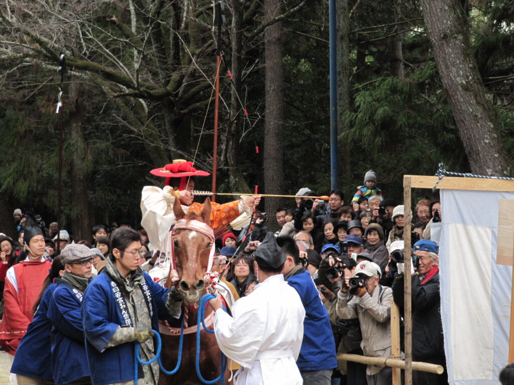 Le festival Kasuga Wakamiya On se tiendra du 15 au 18 décembre au sanctuaire Kasuga Wakamiya, qui est un sanctuaire subsidiaire de Kasuga Taisha. Cette fête solennelle a une tradition d’environ 900 ans et a été désignée bien culturel populaire immatériel d’importance nationale. Une grande variété d’arts du spectacle tels que le dengaku, le bugaku, le sarugaku et le wabu sont dédiés à Wakamiya. Les événements majeurs incluent le festival Oshukudokoro le 15, le festival Yoimiya le 16, le Senko-no-gi et l’Akatsuki-sai le 17, la cérémonie Owatari, l’Otabisho-sai, le Kanko-no-gi et le sumo de dédicace et l’après-banquet Noh le 18. La cérémonie Owatari du 17 est le point culminant du festival, avec une procession d’environ 1 000 personnes et une cinquantaine de chevaux qui recrée les coutumes scintillantes de la période Heian. Le magnifique cortège de personnages portant des costumes historiques est vraiment un spectacle à voir.