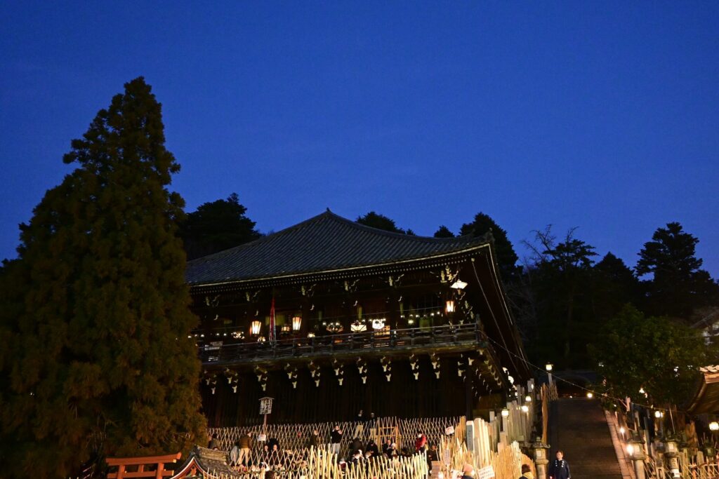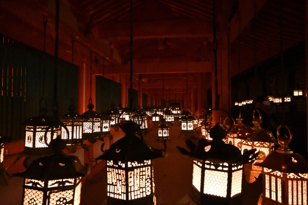 Environ 3 000 lanternes sont placées tout au long de l’approche et du terrain du sanctuaire Kasuga Taisha et sont allumées en même temps du crépuscule jusqu’à la nuit. Ce jour-là, vous pouvez visiter le sanctuaire de nuit et payer un supplément pour visiter l’intérieur du cloître.