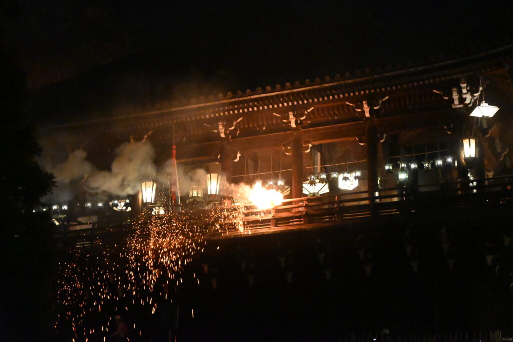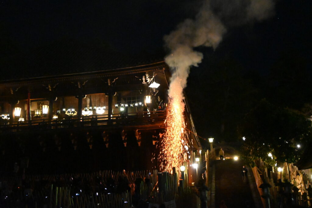 Otaimatsu : Chaque soir pendant le festival, de grandes torches sont allumées sur la scène Nigatsudo. On dit que si vous êtes exposé aux étincelles volantes, vous pourrez rester en bonne santé toute l’année. Le dernier jour, le 14 mars, verra le spectacle aux flambeaux le plus spectaculaire. Surtout le 12 mars, des « torches panier » plus grandes sont utilisées.