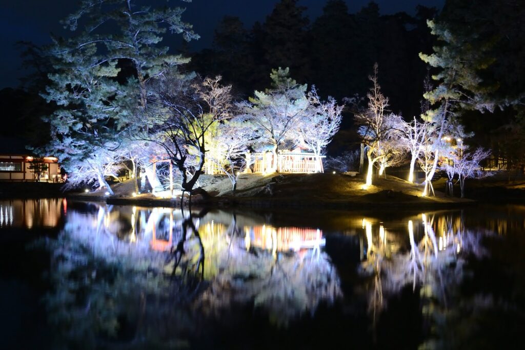 « Nara Ruri-e » est un événement nocturne hivernal qui relie les trois sanctuaires et temples les plus célèbres de Nara (Kasuga Taisha, Kofuku-ji et Todai-ji) avec une lumière mystique de lapis-lazuli. Pendant l’événement, chaque sanctuaire et temple sera ouvert au public la nuit, et le point culminant sera les illuminations qui décorent les jardins comme une mer de lumière bleue. Les bâtiments historiques qui émergent dans le silence de la nuit froide dégagent une beauté solennelle différente de celle vue pendant la journée. Chaque lieu sera décoré d’illuminations bleues mystiques et des visites nocturnes spéciales seront également disponibles.