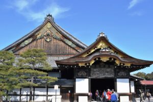 À première vue, il est possible que vous ayez l’impression que le château de Nijo est plutôt une grande résidence qu’un château. Vous avez raison. Il n’y a ni murailles ni douves profondes comme défenses. Le château de Nijo a été construit en 1603 par Tokugawa Ieyasu, fondateur du shogunat de Tokugawa établi à Tokyo. Avant la construction de ce château, il y a eu des batailles pour l’hégémonie du Japon et la famille Tokugawa a finalement pris le pouvoir. Ce n’a donc pas été à des fins militaires que ce château a été construit. Il a servi plutôt de résidence temporaire de shoguns (le chef du shogunat) lors de leur visite à Kyoto et également de garnison du palais impérial.