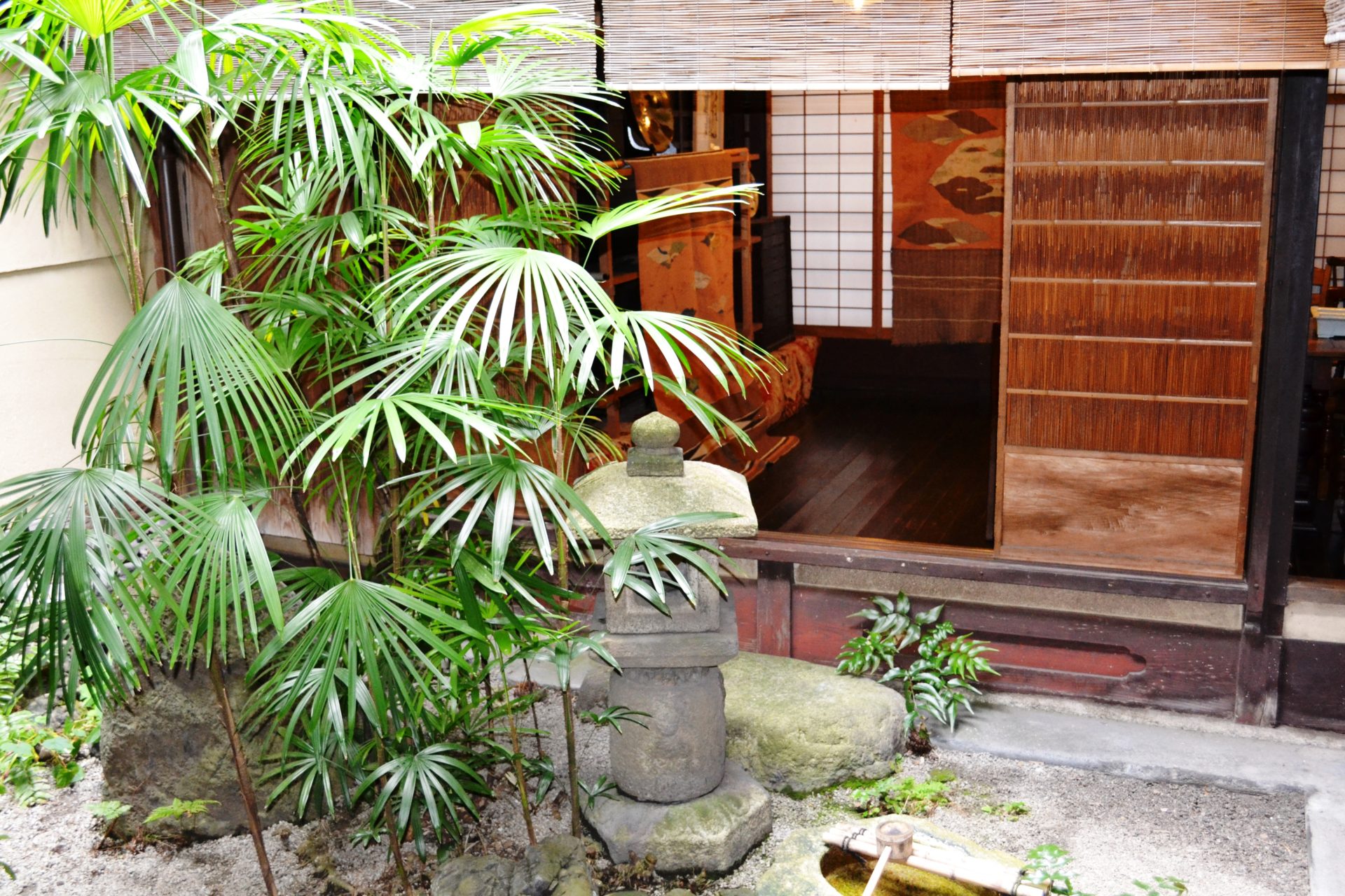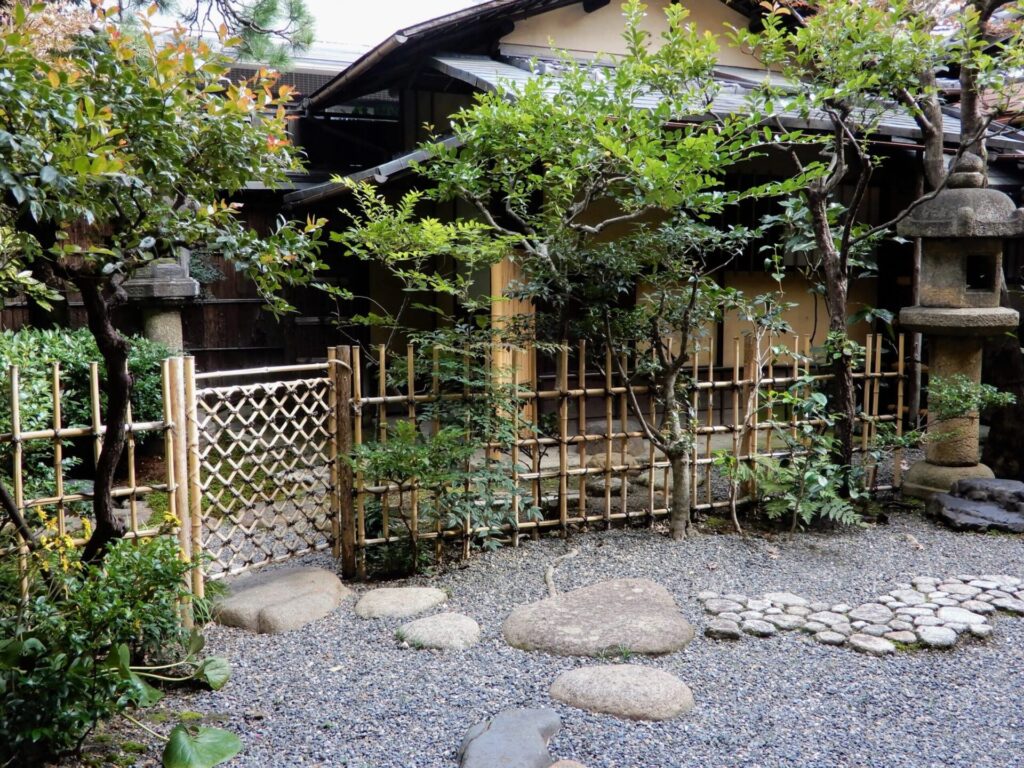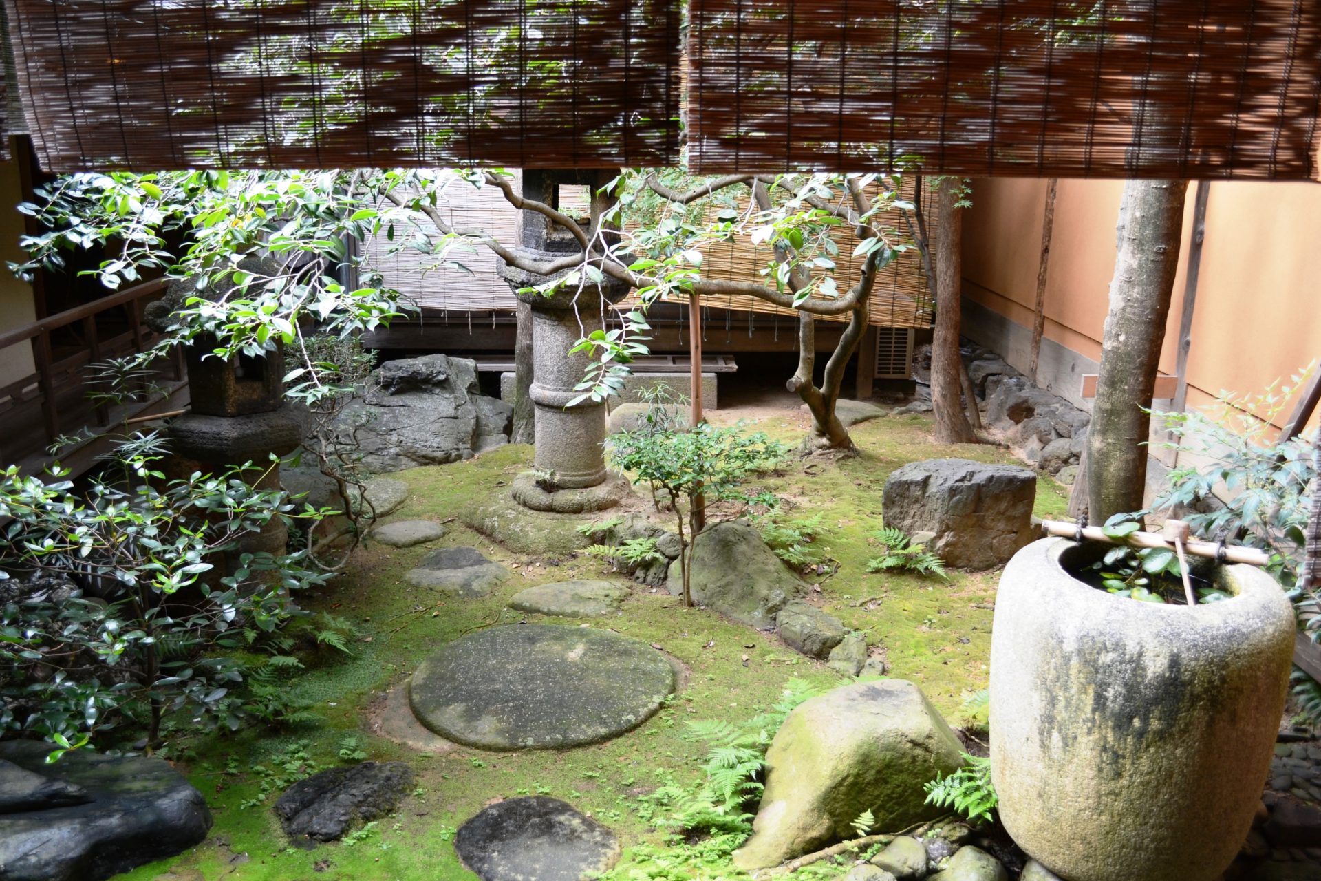 La cour de machiya crée une atmosphère de calme. Ici, les érables sont plantés près de l’avant-toit pour que vous puissiez admirer des paysages à travers les branches. Des pierres de taille et de couleur variées sont disposées ingénieusement sur le sol et donnent une touche esthétique à la cour. Un autre petit jardin est aménagé devant le pavillon de thé. C’est aussi beau.