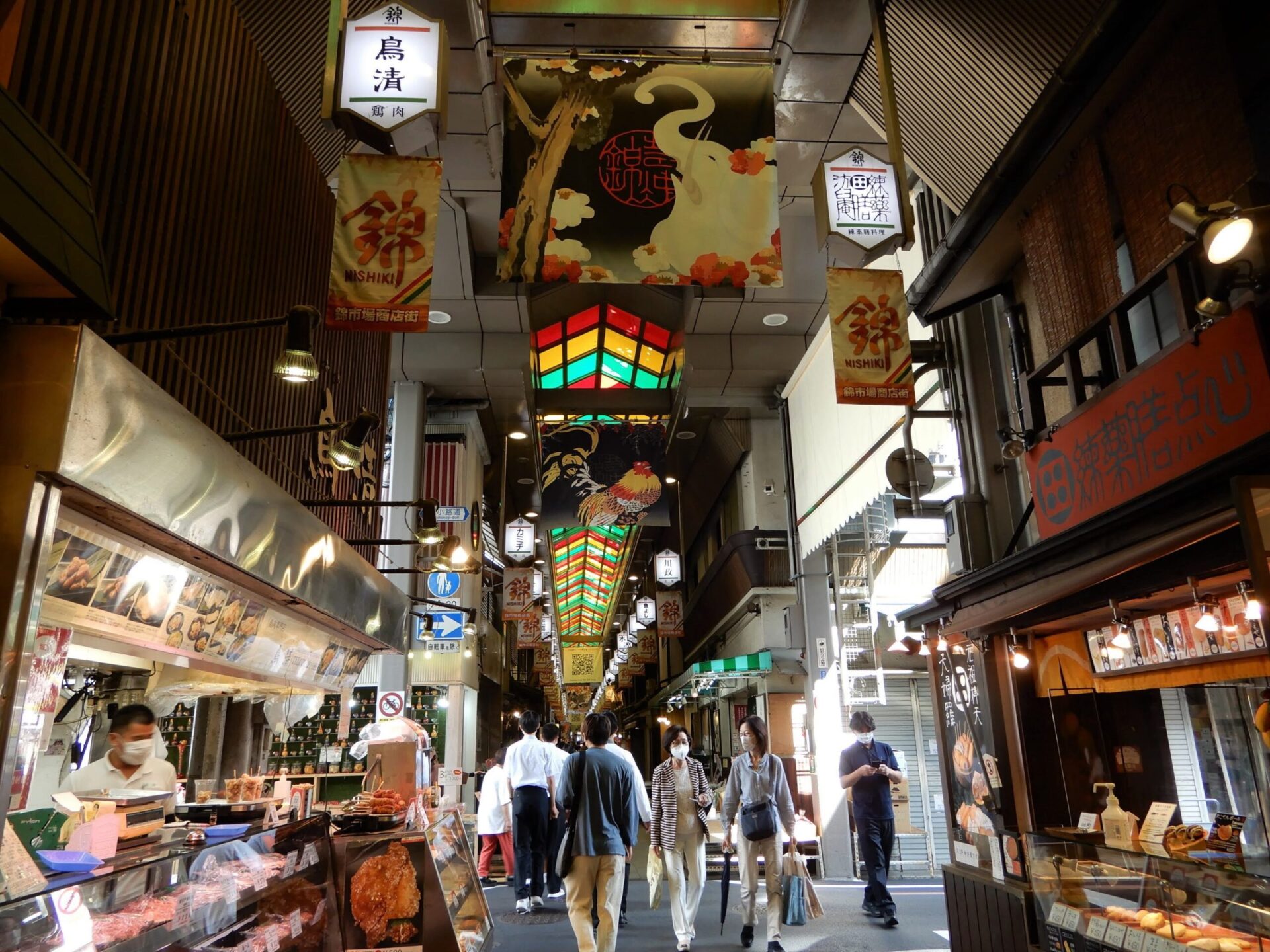 Le marché Nishiki se situe dans la première rue au nord de l’avenue Shijo. Il s’est développé à l’origine comme marché aux poissons. Environ 130 magasins qui vendent des denrées variées comme du poisson, des légumes, des sushi, du thé japonais et bien d’autres choses comme des couteaux japonais, s’alignent sous l’arcade. Vous découvrirez la riche culture culinaire de Kyoto en parcourant ce marché.