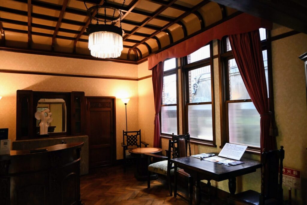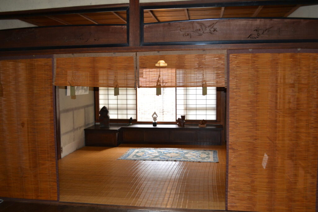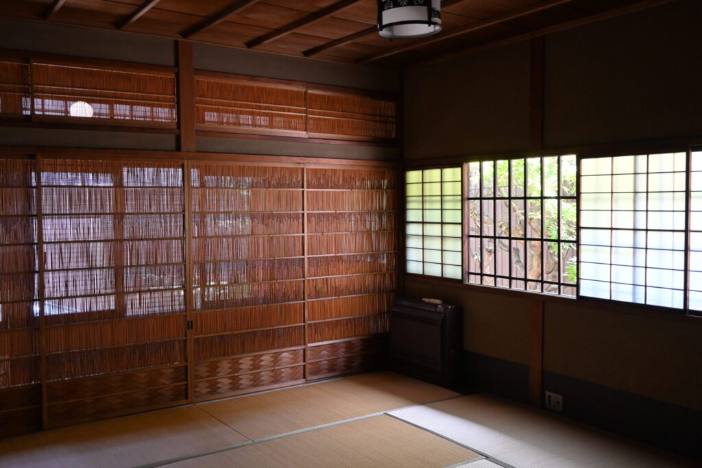 Construite en 1926, Hachiku-an (ancienne résidence de la famille Kawasaki, marchand de kimono) est une machiya située au cœur de la ville. Elle risquait de se faire démolir comme d’autres machiya, mais à présent, on s’efforce de la préserver pour transmettre sa valeur historique aux générations futures. Ce qui la différencie des autres machiya traditionnelles, c’est son style mi-japonais, mi-occidental. On retrouve une atmosphère rétro-moderne du début du XXème siècle dans les pièces de style occidental.