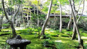 Saiho-ji qui abrite un beau jardin recouvert de plus de 120 espèces différentes de mousses est autrement appelé le temple des mousses. Bien qu’une réservation préalable par courrier postal soit nécessaire et que le prix du billet d’entrée soit élevé, son jardin représentant la Terre Pure bouddhiste (l’Élysée bouddhiste) vaut la peine d’être visité.