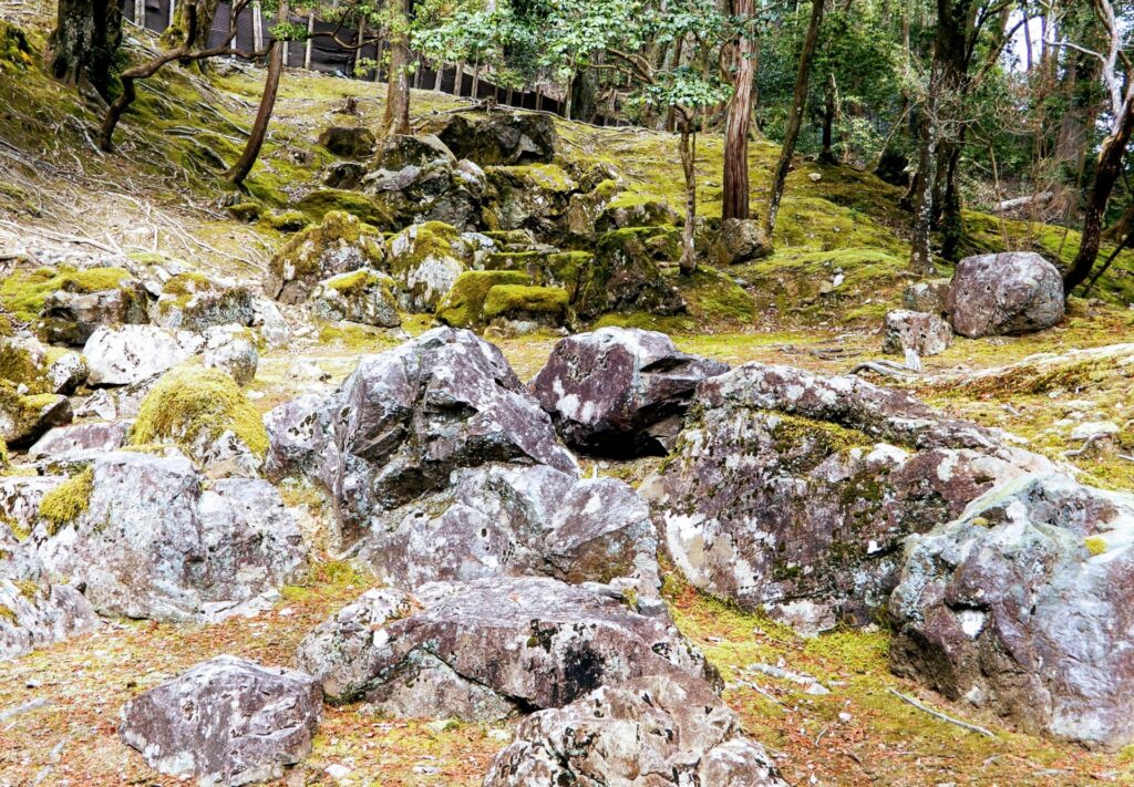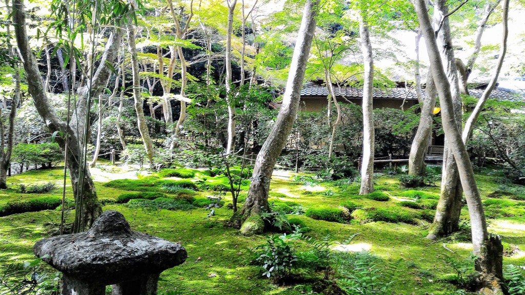 Connu pour son jardin couvert de mousse et entouré de bambous, ce site est un ermitage plutôt qu’un temple. Son nom provient du nom d’une danseuse du XIIème siècle. Si je vous raconte son histoire d’amour, vous éprouverez de la tristesse. Le contraste des couleurs rouges des feuilles avec les couleurs vertes des mousses est impressionnant en automne.