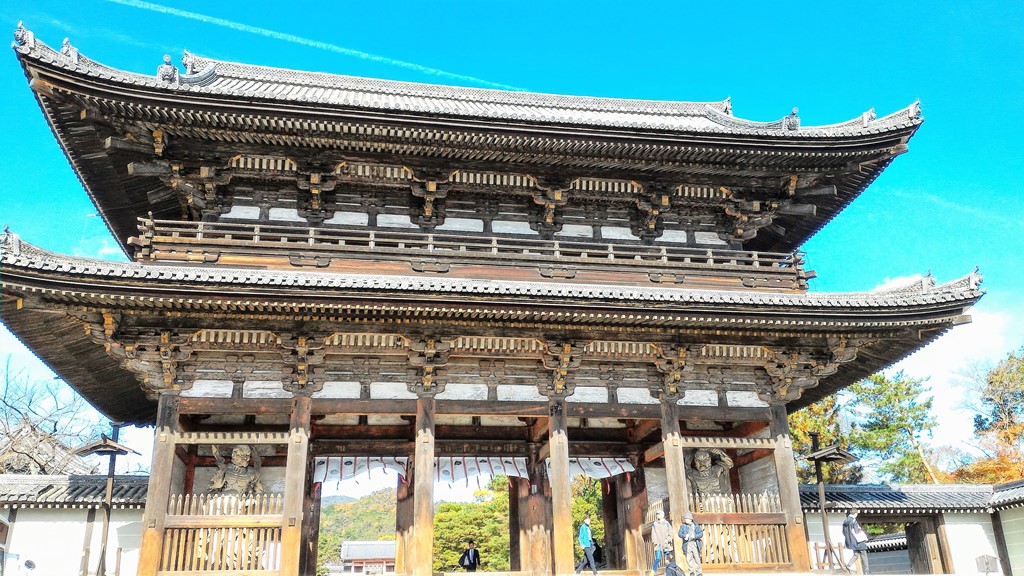 Une paire de grandes statues de gardien vous accueille à la porte d’entrée. Fondé par un empereur à la fin du IXème siècle, ce temple avait une relation étroite avec la famille impériale. De fait, les empereurs envoyaient un de leurs fils pour occuper la fonction de grand moine jusqu’à la restauration de Meiji. C’est pourquoi le style de l’architecture du palais est conservé dans son enceinte.