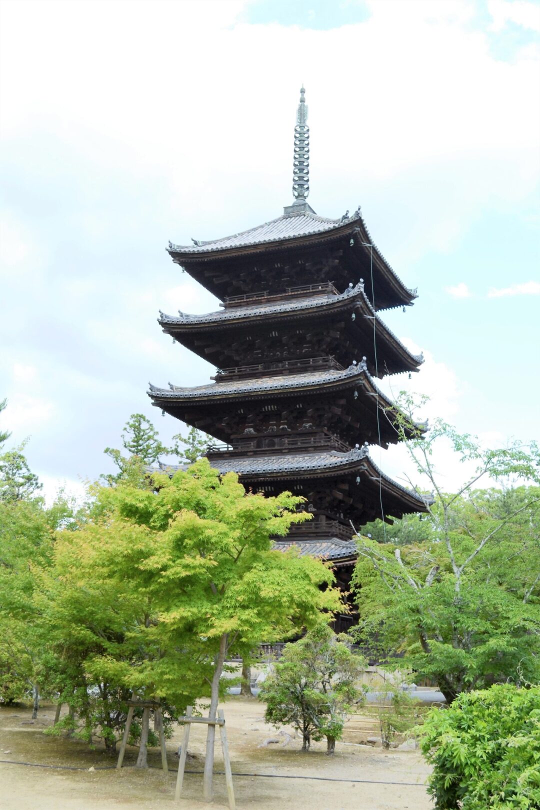 La pagode à cinq étages se caractérise par sa forme droite avec peu de courbure.