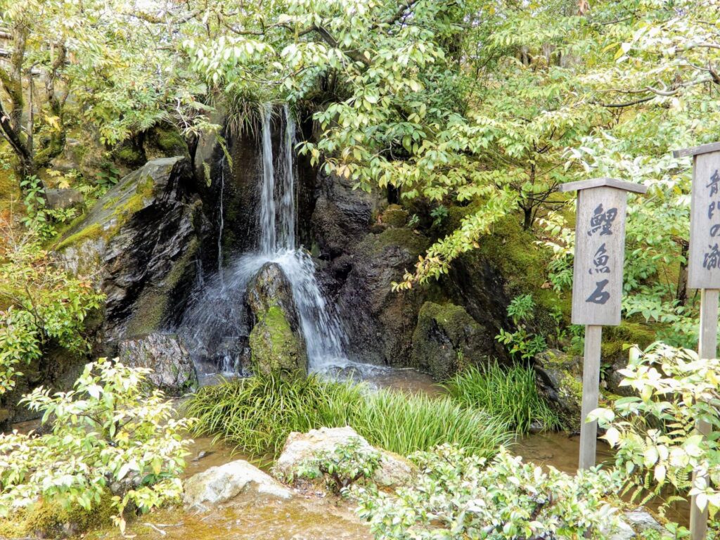 Au printemps, ce temple est bondé de touristes qui viennent admirer son beau cerisier pleureur, mais aux autres saisons vous pourrez profiter de ces deux jardins tranquillement. Il y a aussi ici et là des motifs de poisson-chat et de calbasse liés au lavis appartenant au temple.