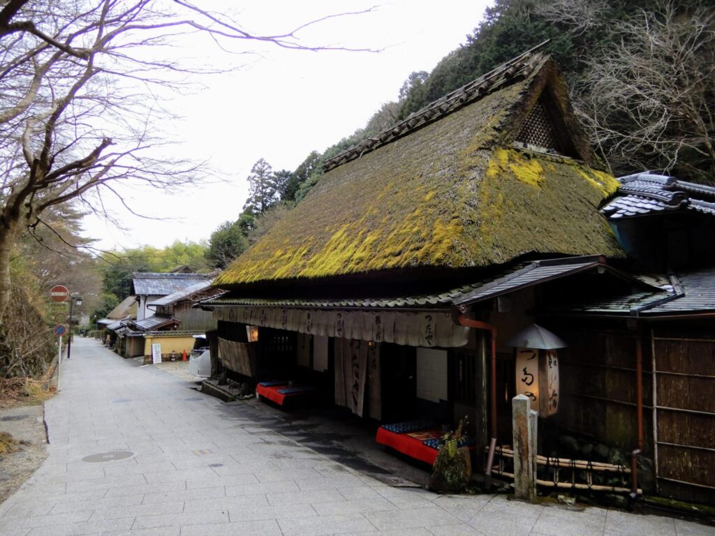 Quand vous descendez du temple Otagi Nenbutsu-ji et continuez tout droit, un portique orange sera visible sur votre droite. C’est l’entrée du quartier de Saga Toriimoto. Il se situe au pied de la montagne Atago. Il est bordé de maisons aux toits de chaume et de machiya, maisons traditionnelles des commerçants et des artisans. Je pourrai vous parler de la structure détaillée des machiya dans un musée ouvert au public comme exemple de maison traditionnelle.