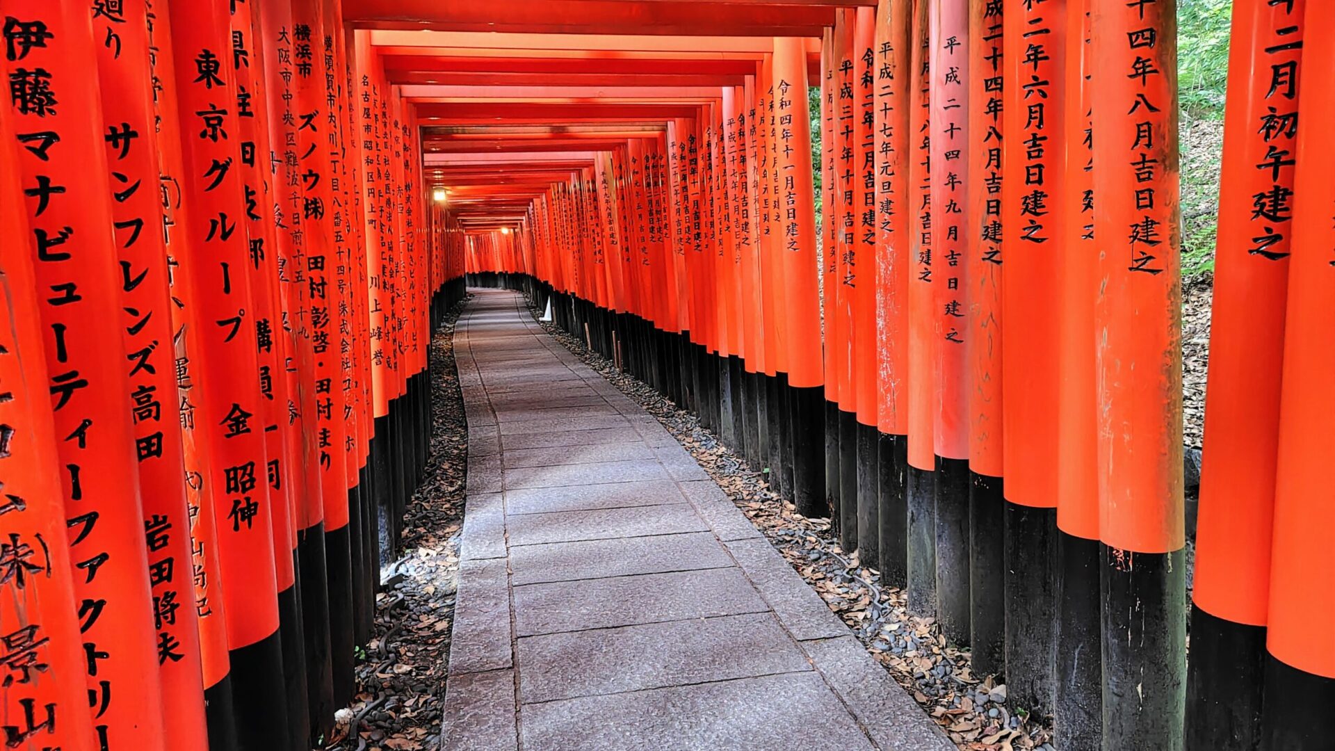 Connu pour ses milliers de portiques, torii, Fushimi-Inari Taisha est l’un des sites les plus insolites du Japon aujourd’hui. Les torii innombrables qui se succèdent jusqu’au sommet de la montagne rendent ce sanctuaire célèbre dans le monde entier. Savez-vous qu’il y a environ 80 000 sanctuaires shinto au Japon ? Les sanctuaires portant le nom « inari » représentent 30 % d’entre eux et Fushimi-Inari Taisha est le siège de tous les sanctuaires Inari.