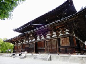 Le Kon-do est le bâtiment principal du temple. Il abrite une statue du yakushi nyorai, le Bouddha médecin et deux statues de ses assistants qui travaillent comme infirmier, le Bodhisattva solaire nikko bosatsu et le Bodhisattva lunaire gakko bosatsu. Remarquez aussi un groupe de douze généraux divins en tunique militaire disposés autour du piédestal où s’assoit le yakushi nyorai.