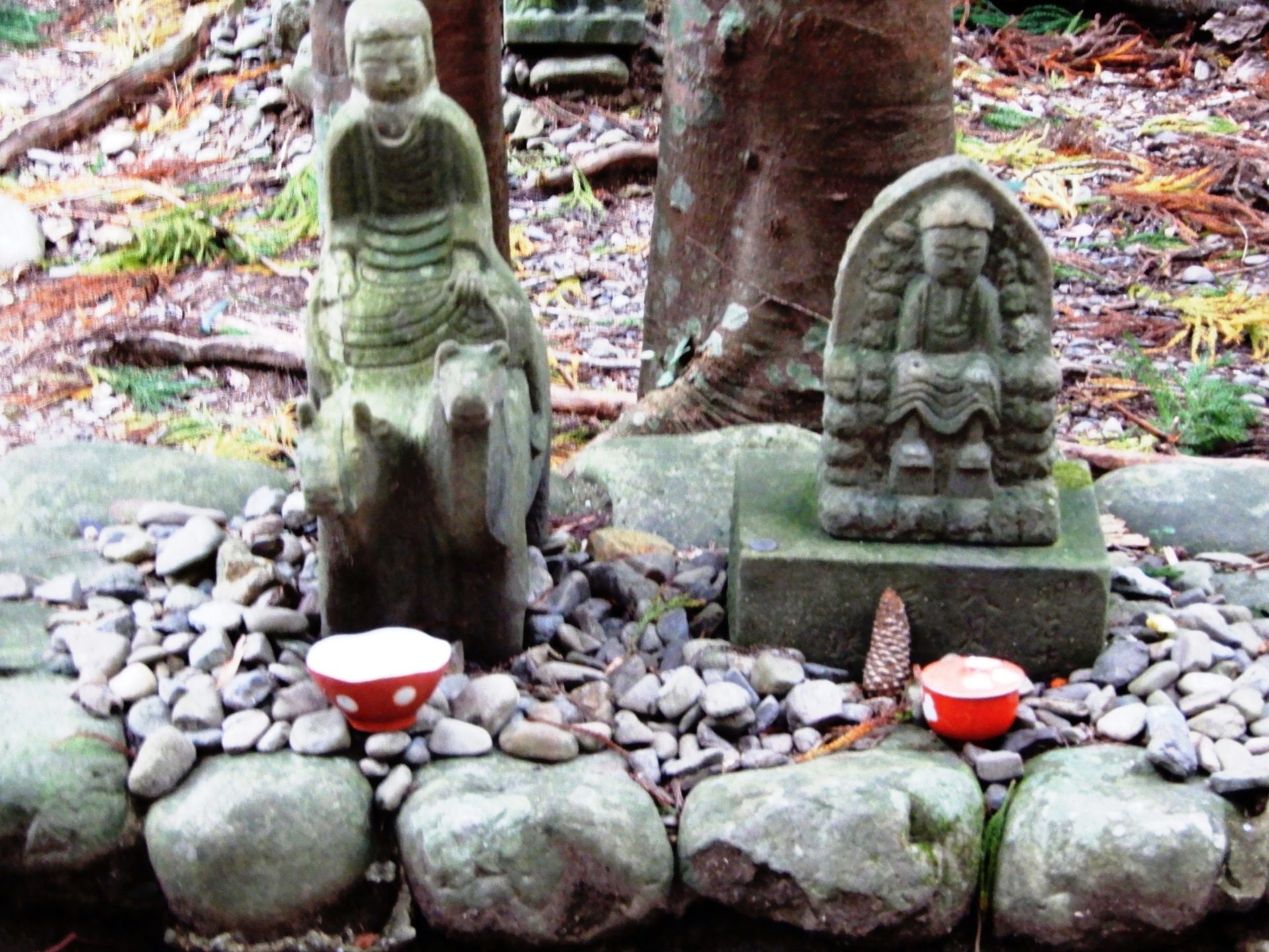 La statue de Gyubadoji, un des serviteurs de la divinité bouddhiste Benzaiten se dresse tranquillement dans la forêt à une ambiance mystique. Elle est assise à la fois sur une vache et un cheval. Selon une légende locale, elle représente l’empereur émérite Kazan qui s’est rendu à Kumano après avoir été forcé d’abdiquer à l’âge de 19 ans.