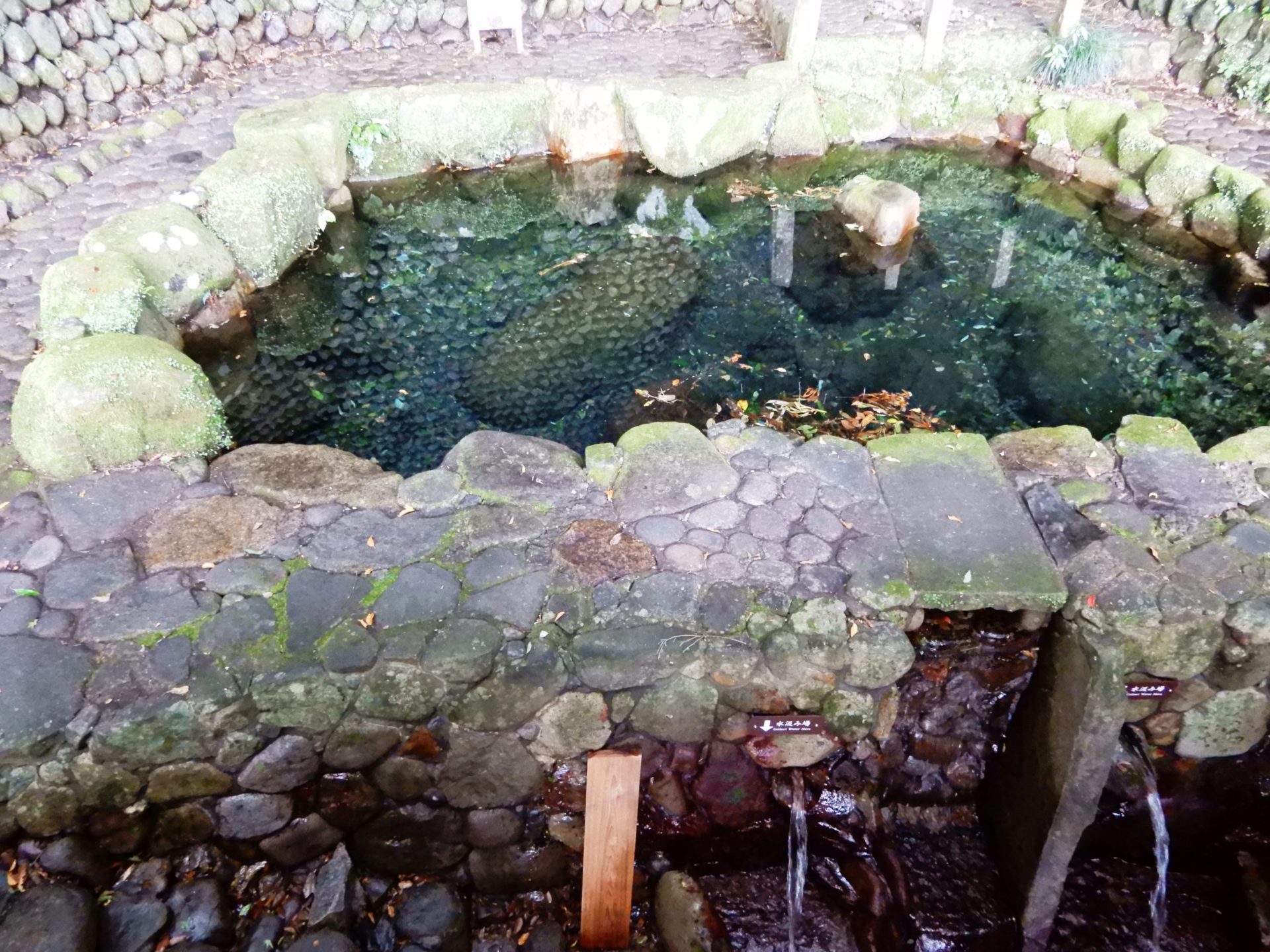 La source Nonaka-no-Shimizu qui se trouve en bas du sanctuaire Tsugizakura-oji. C’est l’une des 100 meilleures sources d’eau naturelle du Japon. Depuis les temps anciens, elle sert de station d’eau pour les pèlerins.