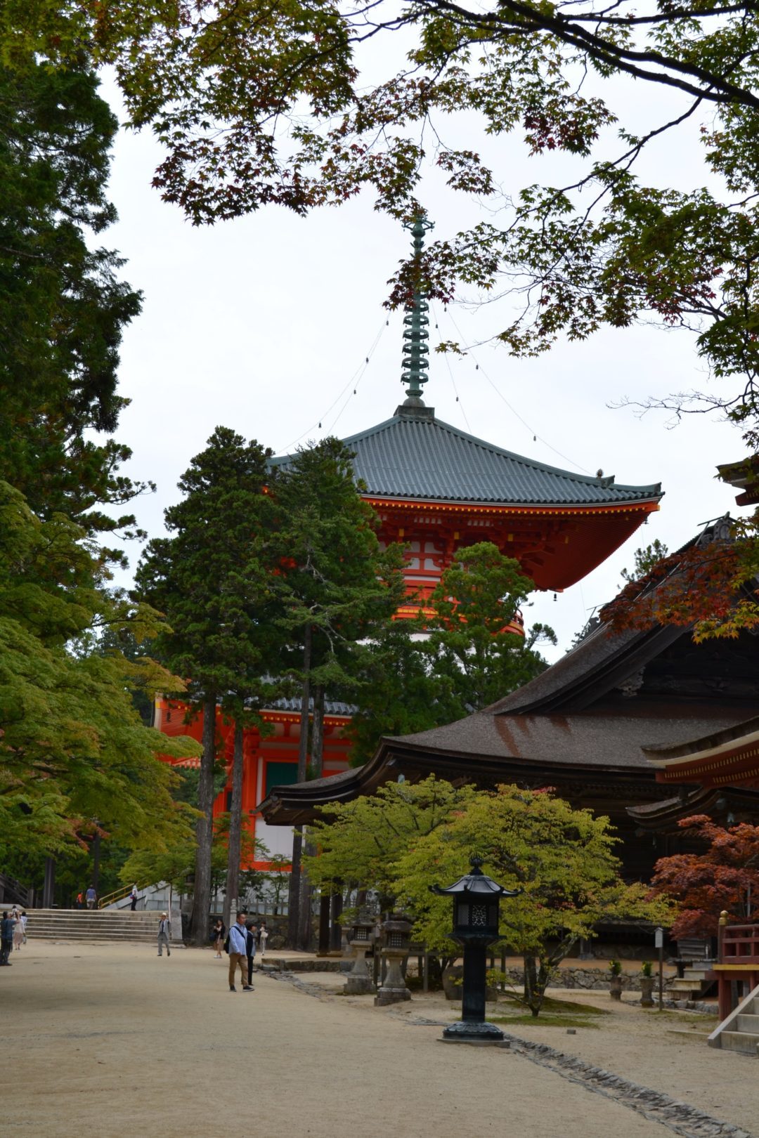 À Danjo Garan, une grande pagode vermillon appelée le Konpon Daito est mise en évidence. Son intérieur aux couleurs variées et vives vous impressionnera. Un immense mandala à trois dimensions y est formé avec une grande statue du dainichi nyorai du royaume de la matrice escortée de quatre statues du bouddha du royaume de diamant et entourée de seize colonnes où sont peintes les divinités de la compassion, kannon.