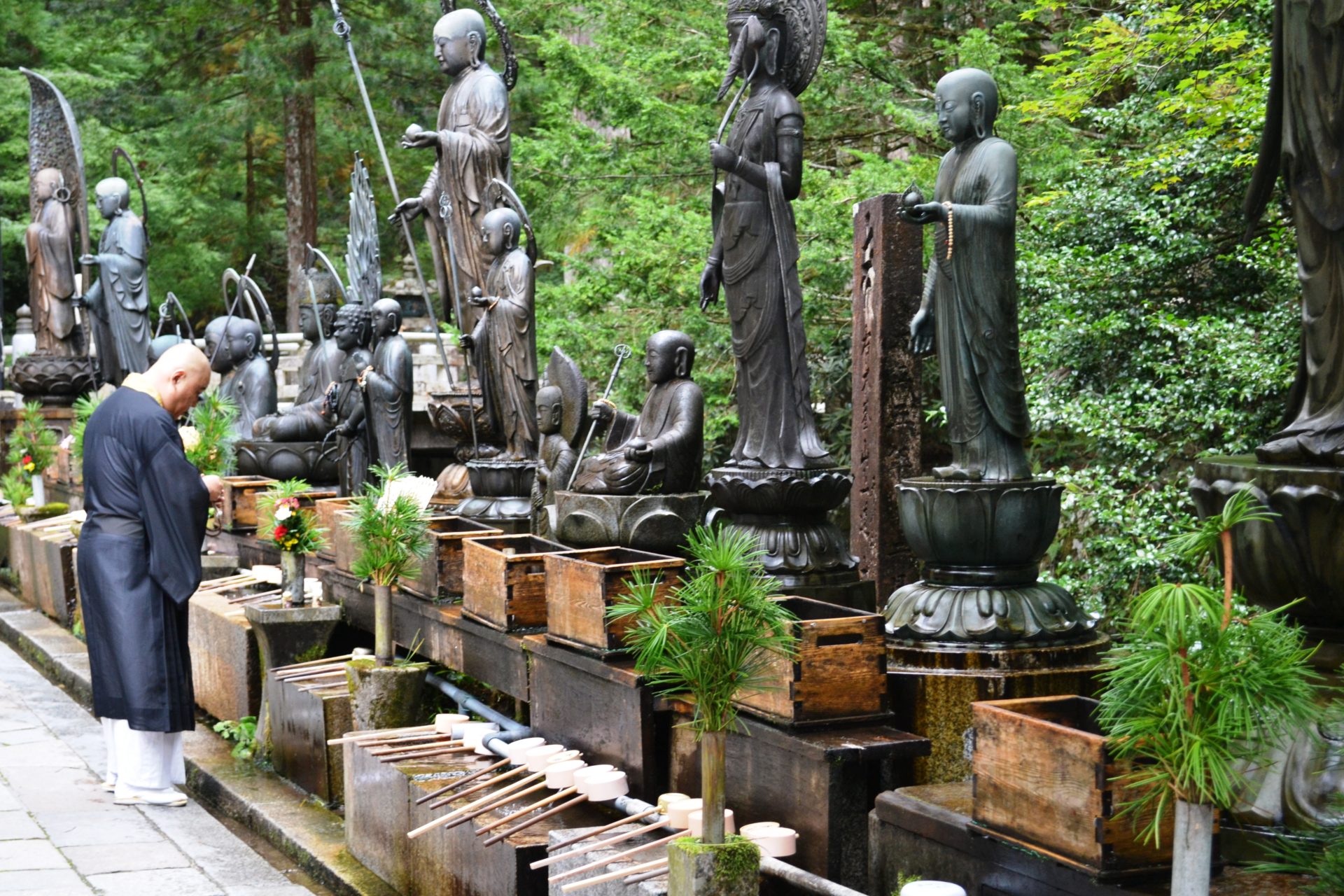 Les pierres tombales de samouraïs célèbres et autres personnages historiques y sont remarqués, mais dirigez aussi vos regards vers de petites pierres tombales de la classe populaire. Discrètement posées, vous pourrez passer sans en remarquer. Ce qui est unique au mont Koya, c’est son esprit généreux qui accueille tous sans distinction de rivalité, de classe sociale, de sexe ou de religion.