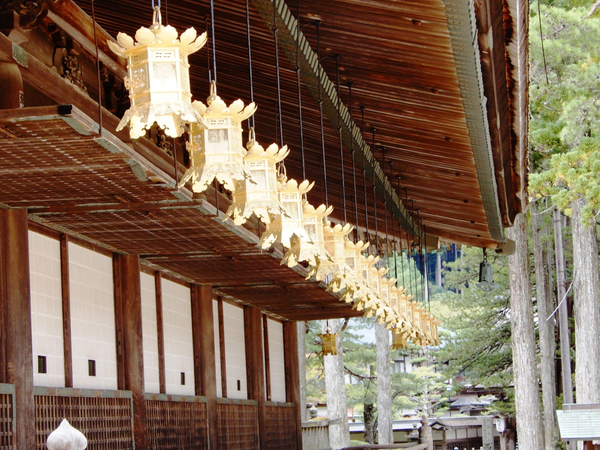 Le Mie-do, pavillon élégant avec des lanternes suspendues a été à l’origine une salle du bouddha privée de Kukai. Il abrite son portrait. À Danjo Garan, la plupart des bâtiments ont été détruits à plusieurs reprises par le feu. Aujourd’hui, il y a le système de protection contre le feu et savez-vous ce que c’est ?