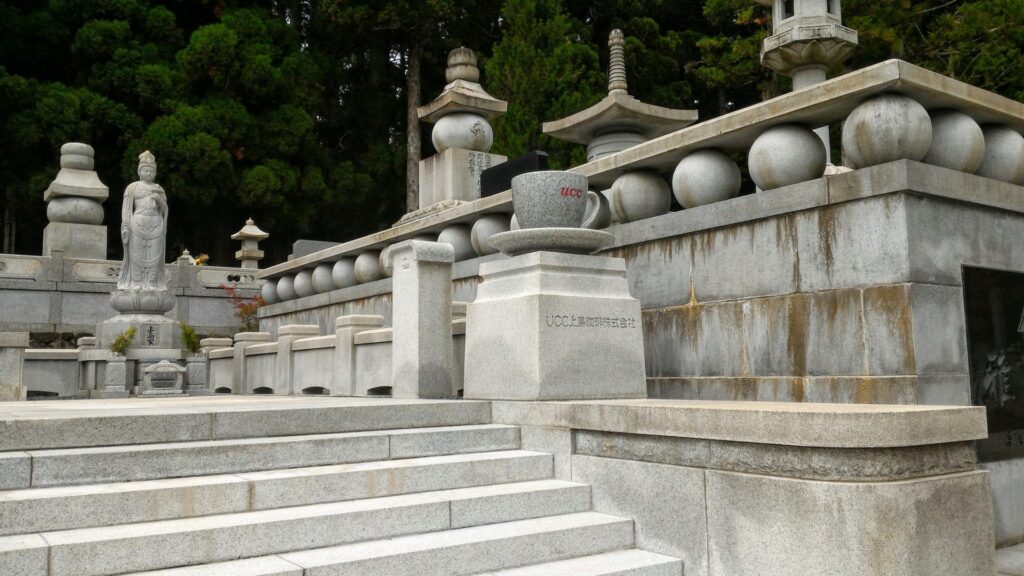 Si vous prenez un chemin détourné en revenant du mausolée de Kukai, vous arriverez au cimetière contemporain et y trouverez une grande variété de pierres tombales originales. Ce sont des monuments établis par des entreprises japonaises afin de prier pour le repos des âmes des employés. Au Japon, la tradition voulait que l’homme avait une fidélité totale envers l’entreprise où il travaille. Je pense que ces monuments témoignent du remerciement sincère des entreprises envers leurs employés.