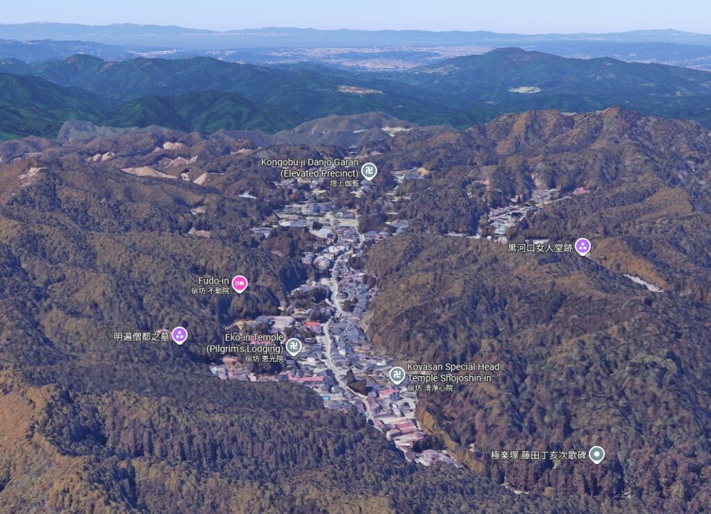 Danjo Garan, lieu dédié aux exercices spirituels du bouddhisme ésotérique shingon, s’étend à l’ouest du mont Koya. C’est un complexe qui réunit de nombreux bâtiments religieux y compris une grande pagode vermillon. Il fut le premier que Kukai a abordé à édifier lors de la fondation du mont Koya.