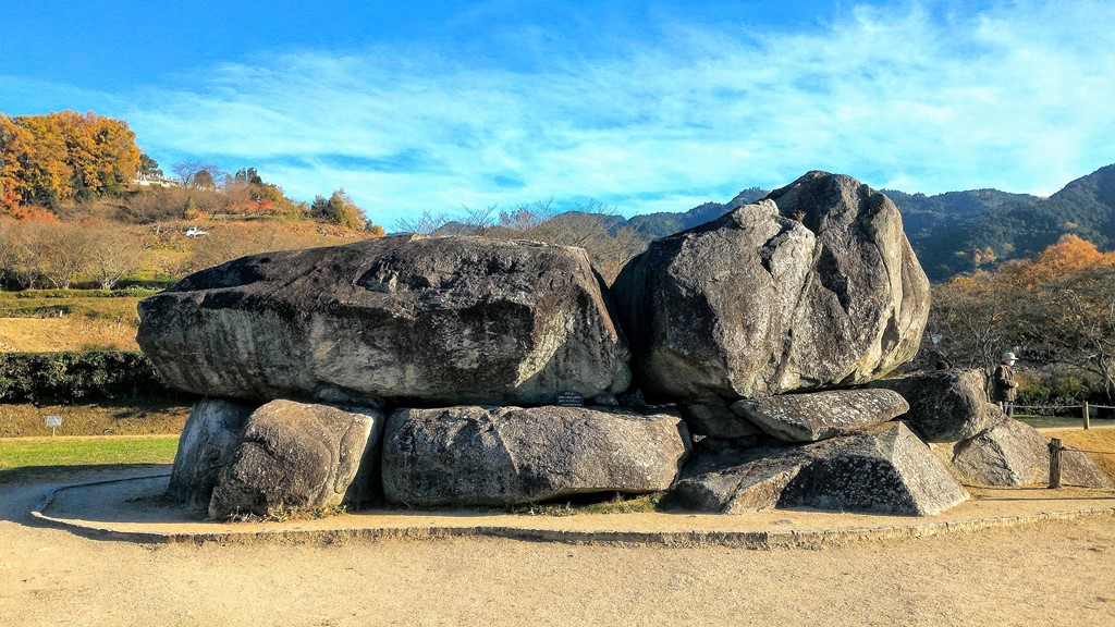 Cet assemblage d’une trentaine de roches granitiques est aussi un monument funéraire, kofun. On attribue ce kofun d’Ishibutai datant du VIIème siècle à une personne qui prenait le pouvoir à cette époque. Le poids brut de ces roches massives est d’environ 2 300 tonnes. Comment est-ce qu’on les a transportées ?