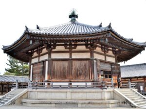 Ce bâtiment octogonal appelé Yumedono est une construction du VIIIème siècle. Il abrite une statue du Bouddha en bois doré kuse kannon. Il est dit que c’est la statue grandeur nature du prince Shotoku, fondateur de ce temple. Scellée jusqu’aux dernières années du XIXème siècle, cette statue mystérieuse excite encore notre curiosité. À présent, elle est montrée au public pendant un mois au printemps et en automne chaque année. Profitez de cette occasion pour aller la voir. Qu’est- ce que son sourire mystérieux vous inspire-t-il ?