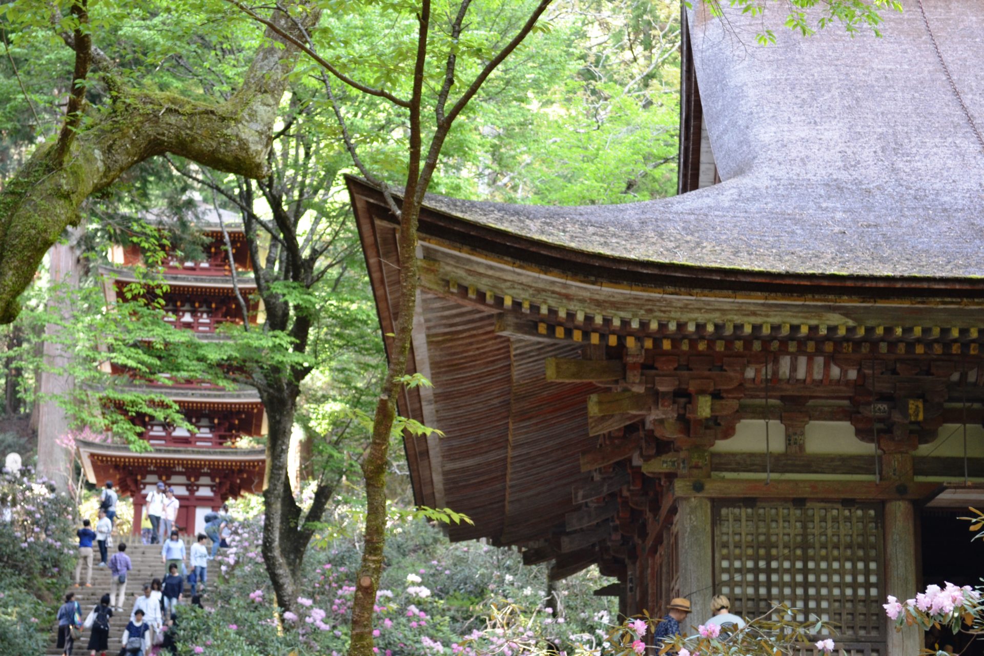 Au-delà des escaliers en pierre, le symbole du temple Muro-ji, la pagode à cinq étages vous attend. C’est la plus petite et la deuxième plus ancienne pagode du Japon. Son apparence élégante sera impressionnante.