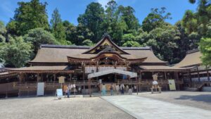 Il y a de nombreux sanctuaires auxiliaires dans l’enceinte d’Oomiwa-jinja. Au sanctuaire Sai-jinja, le dieu du médicament est vénéré. Derrière le bâtiment du culte, un puits où l’eau médicale jaillit se trouve. On prie pour la guérison des maladies en y puisant de l’eau. Au sanctuaire Kuehiko-jinja, le dieu de la sagesse est vénéré. Vous trouverez de nombreuses tablettes votives suspendues, ema. Elles ont la forme d’une chouette, symbole de la sagesse et du bonheur. Aux alentours, vous pourrez admirer des fleurs de lys de la fin mai à début juin.