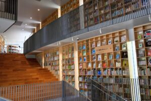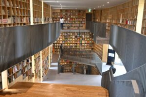 À côté du musée, la forêt des livres d’enfants Nakanoshima conçue par Ando Tadao, l’un des architectes les plus connus du Japon a ouvert ses portes en juillet 2020. Elle abrite plus de 18 000 livres tels que des livres d’images et des œuvres littéraires pour enfants. Ces livres sont répartis en 12 thèmes. On peut lire librement non seulement dans ce bâtiment mais aussi sur la pelouse du parc Nakanoshima si le temps le permet.