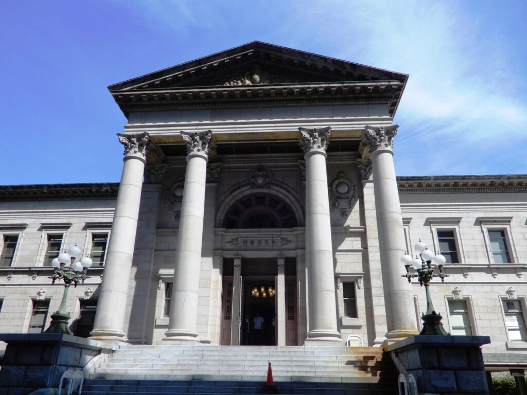 Un bâtiment majestueux de style néo-baroque se dresse à l’ouest de la salle publique centrale. C’est la bibliothèque préfectorale de Nakanoshima créée en 1904. Elle a une vaste collection de livres et de documents relatifs à Osaka.