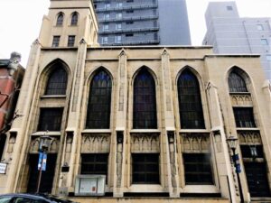 Le temple protestant Naniwa de style gothique été conçu en 1930 par William Merrell Vories, un architecte américain. Les vitraux de couleur jaune et vertes sont simples mais beaux.